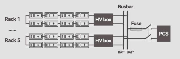 Powermax-M3440 consists of a battery pack, a liquid cooling system, a fire extinguishing system, a battery management system, and power controls.